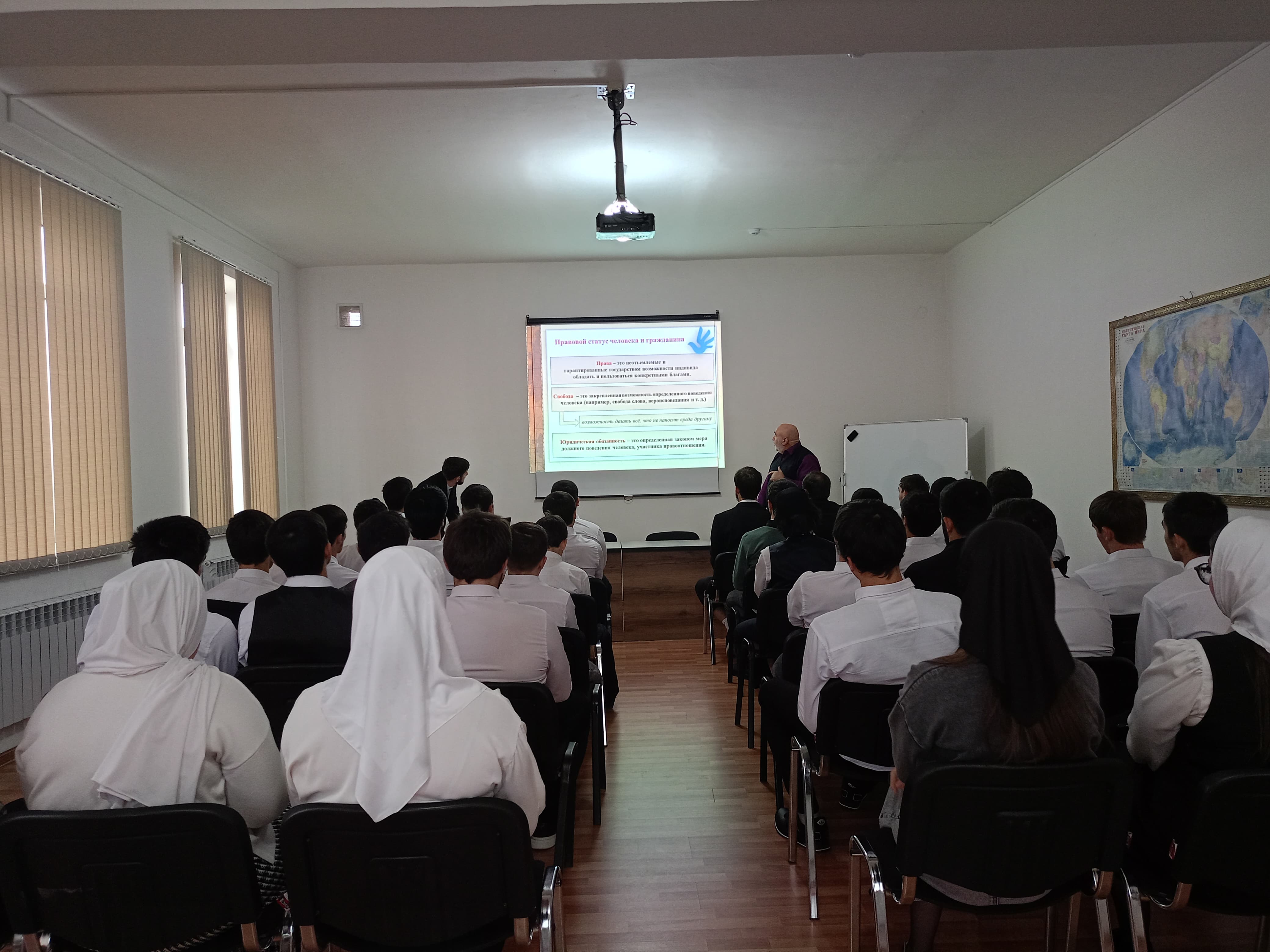 6 декабря 2023 года в рамках Единого урока «Права человека» в ЧПОУ «Колледж экономики и права» состоялась встреча c учащимися первых курсов. В ходе беседы, которая сопровождалась презентацией, были разъяснены основные права человека, их классификация, отмечена особая историческая значимость Всеобщей декларации прав человека. Была подчеркнута тесная взаимосвязь прав и обязанностей. Разъяснена особая роль Конституции Российской Федерации в обеспечении и защите прав и свобод человека и гражданина, утверждении прав человека как высшей ценности.
