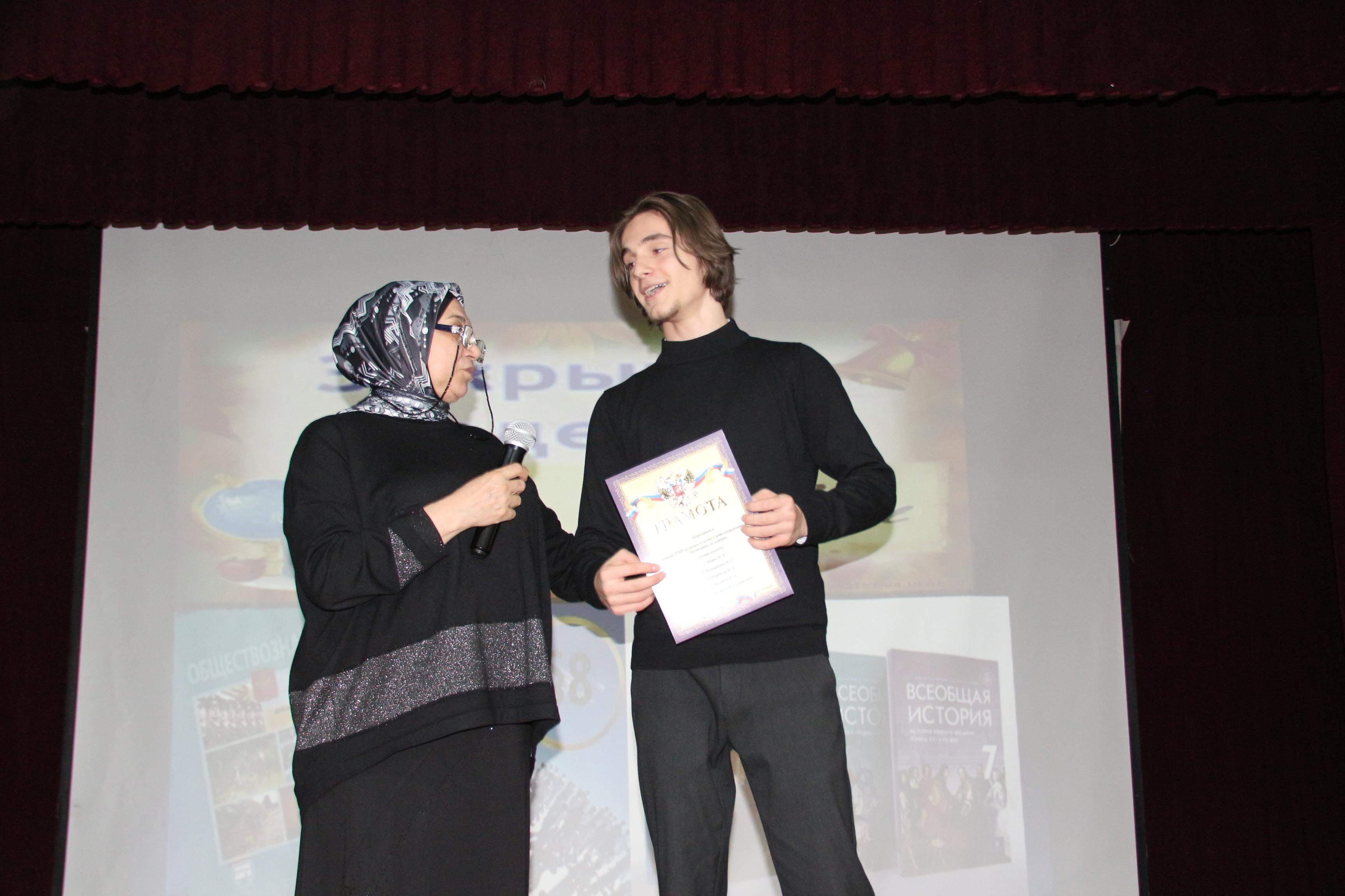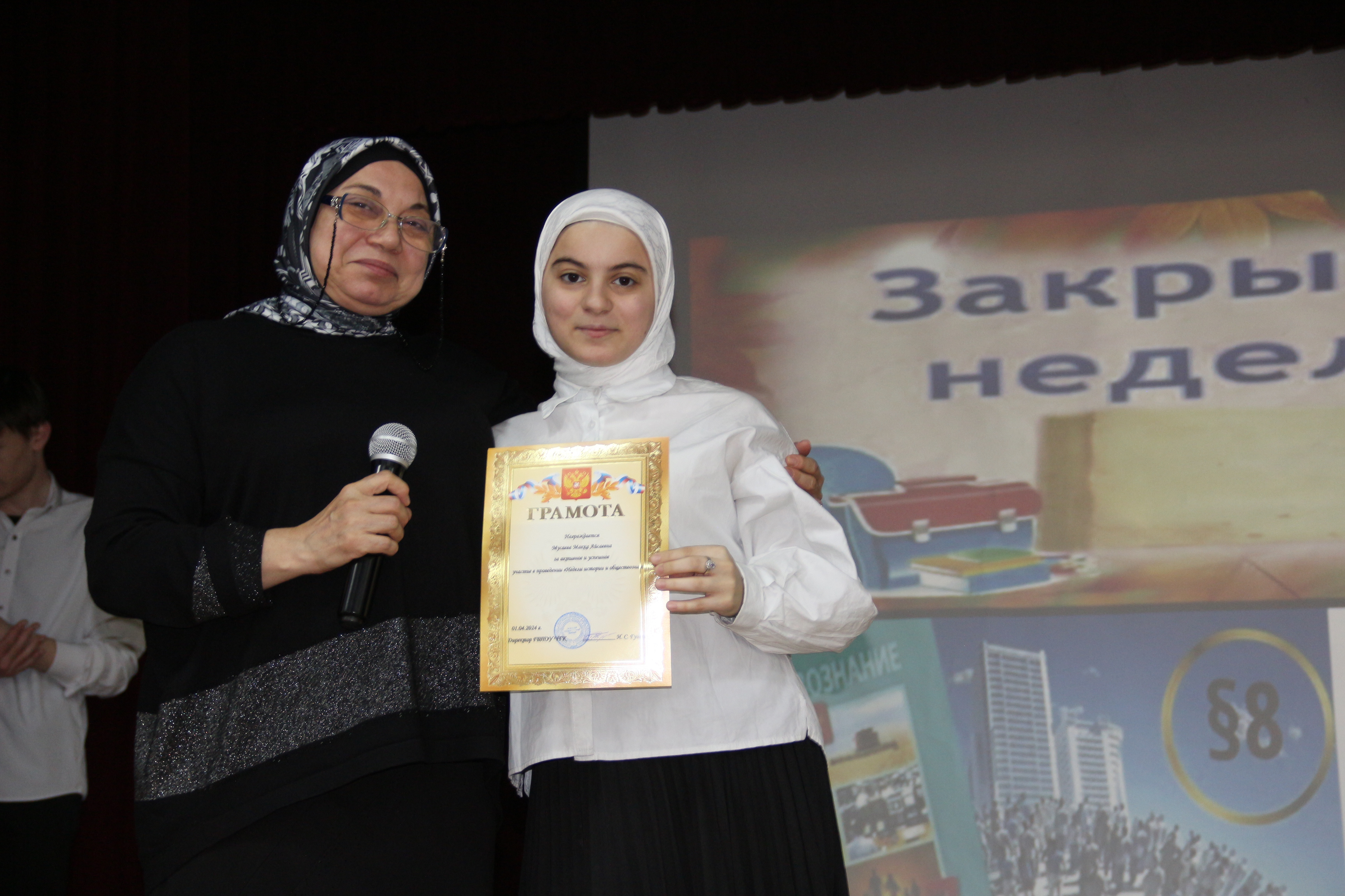 25 марта открыла Неделю Шахмерзаева З.А., в ходе которого ведущие провели обзор выдающихся историков и социологов, рассказали краткую характеристику наук истории и обществознания. Мусаева Макка прочитала стихотворение Константина Симонова «Родина». Прошел просмотр видео Редьярда Киплинга «Заповедь». А также была организована Викторина со зрителями «О праве в шутку и всерьёз».