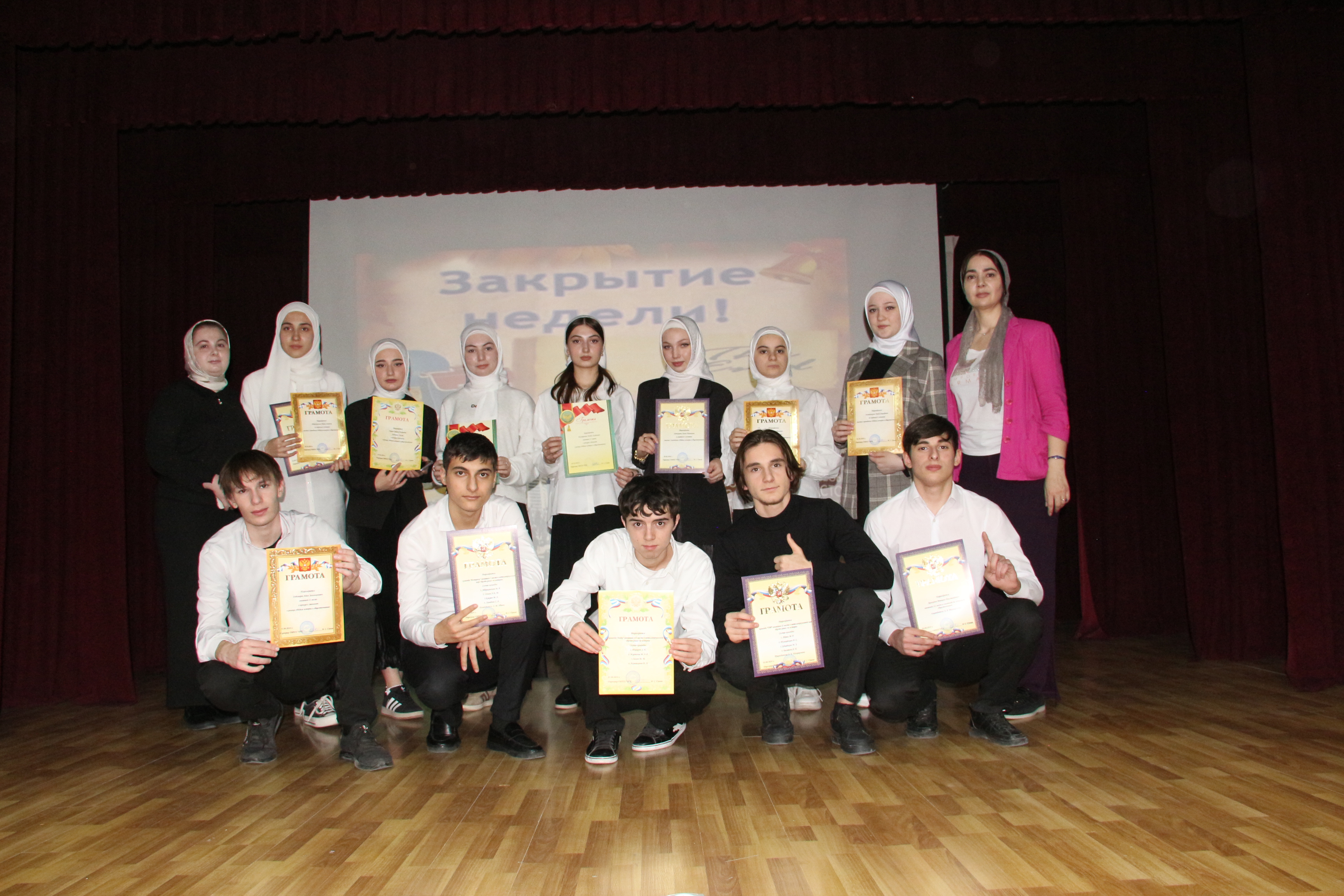 29 марта прошло официальное закрытие Недели истории и обществознания. В ходе мероприятия, прошло чтение стихов М.Исаковского «Куда б ни шёл», показаны документальные фильмы посвященные ВОВ, и конечно обзор мероприятий Недели. В завершении мероприятия прошло торжественное награждение студентов, занявших призовые места в олимпиаде, брейн-ринге и конкурсе стенгазет, который проходил на протяжении всей недели. Также были отмечены студенты принявшие активное участие в мероприятиях Недели.
