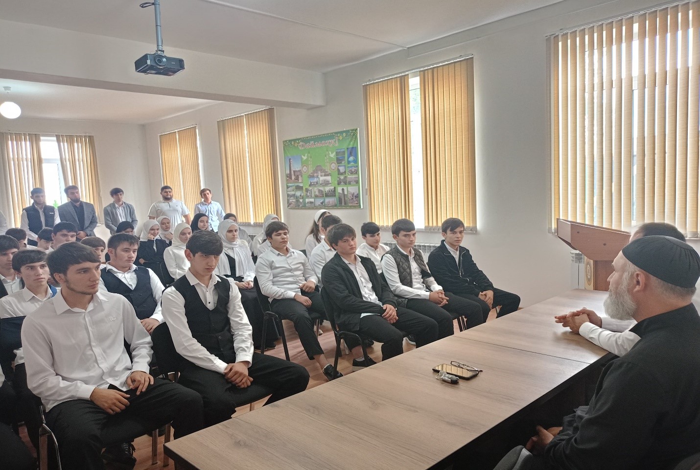 Встреча студентов с председателем совета педагогов-организаторов по ДНВ Жансаев М.А.-М. Урус-Мартановского района во исполнение Комплексного плана противодействия идеологии терроризма РФ в ЧПОУ «К